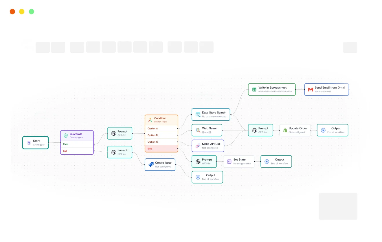 Build automation pipelines where you control every branch, every condition, and every output. Perfect for repeatable processes where the logic is known upfront - invoice processing, lead routing, email triage, support classification.